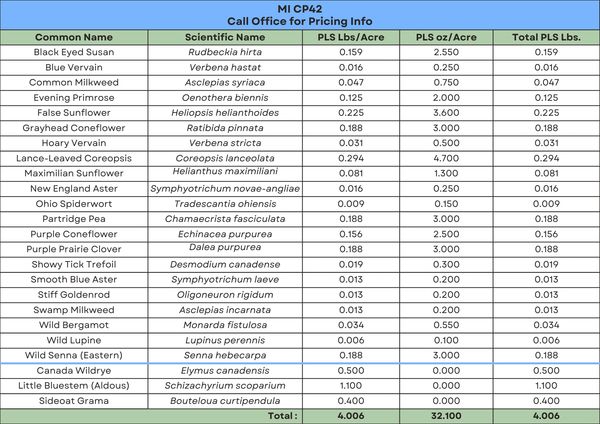 Arenac Conservation District is proud to offer native grass and wildflower seeds that satisfy NRCS Program requirements. Michigan native wildflower and grass habitats stop population declines in monarchs, honeybees, pheasants, and other rare grassland birds. Other benefits include enhancing ground cover that promotes clean soil, water and air quality, increasing recreation opportunities for hunting and wildlife viewing, and increasing the abundance of economically important game species such as pheasant, quail, and mallards.